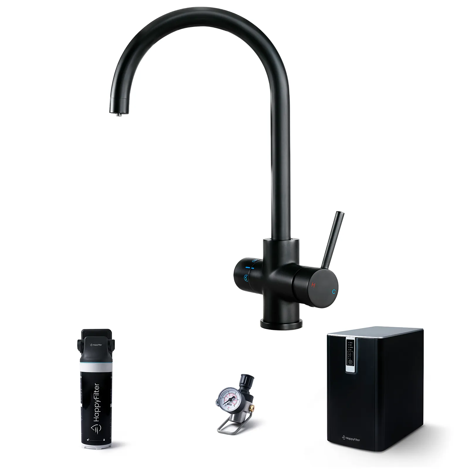 Produktinformationen "HappyFilter FizzRed - heiß | kalt | gesprudelt - Ein Wasserhahn"