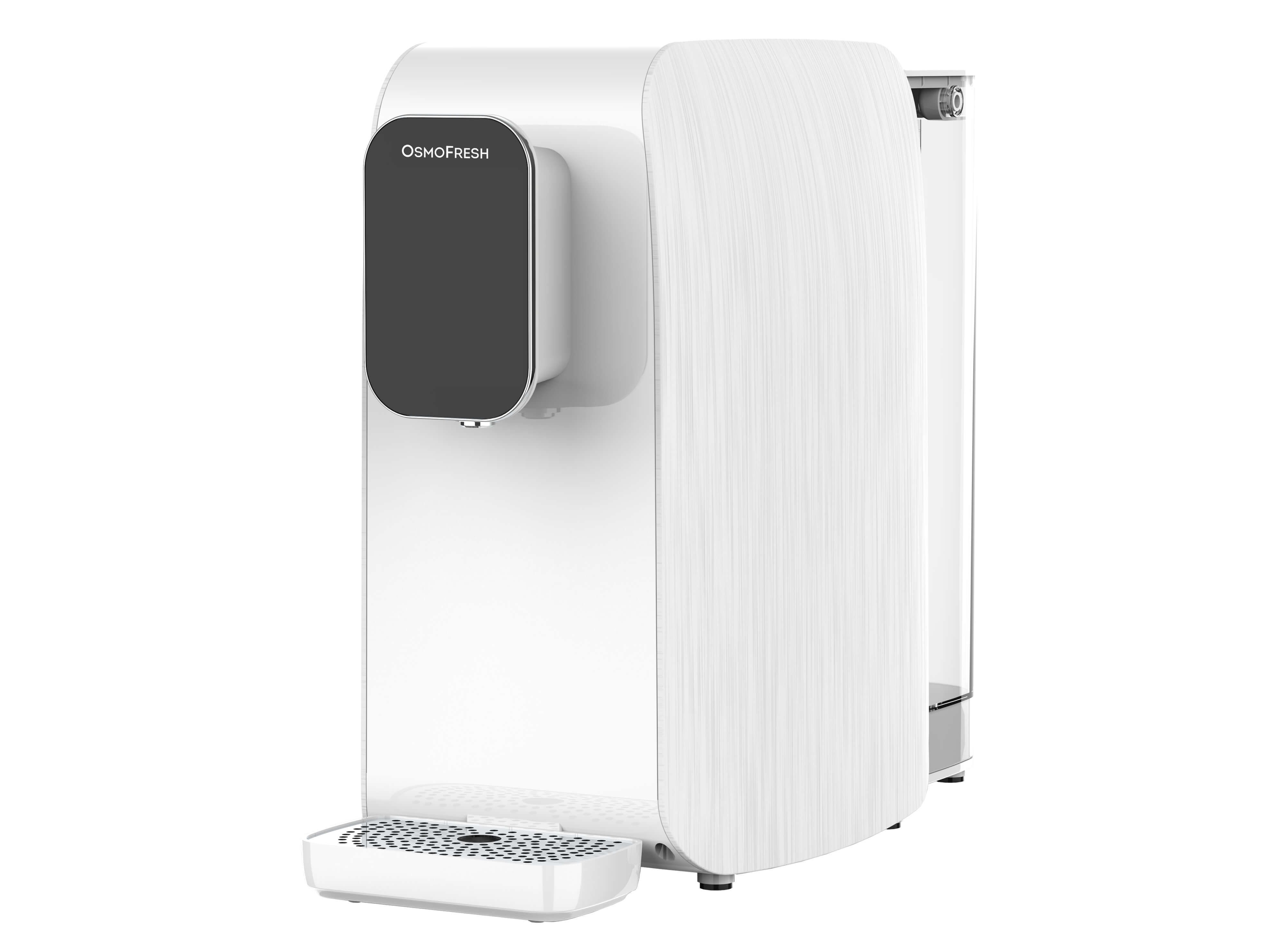 Auftisch Osmoseanlage mit integriertem Durchlauferhitzer ohne Wasseranschluss. Frisch gefiltertes, kochend heißes Wasser in nur 3 Sekunden.